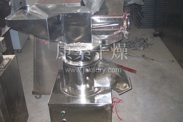 物料由進(jìn)料斗送進(jìn)粉碎室,經(jīng)刀刃和刀座的沖擊,旋轉(zhuǎn)刀和固定刀同時剪切粉碎,由于受到旋轉(zhuǎn)離心力的作用,物料自動從出口處流出。